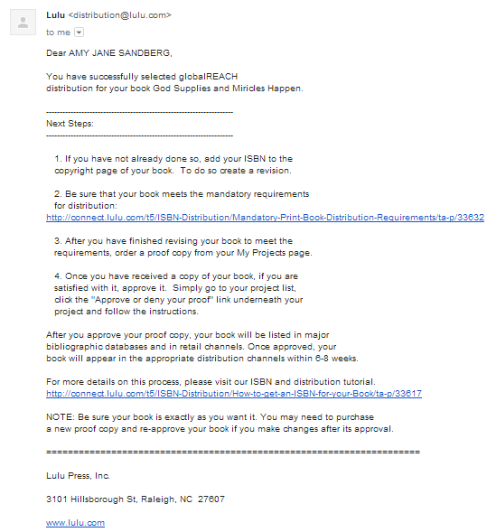 Here is the e-mail they sent me about the books… Now- all I have to do is click yes, and then It is a matter of  weeks,  till I find out they say yes.. (I am standing in Faith they will)  I followed all the rules and requirements.  I am quite sacred actually….  When this goes through   anyone who wants, will have a little insight into my personal life and walk of faith.. It makes me more scared and excited to finish the main book which I have been working on again.  The e-book could be approved any day now, tho I think the print books look way better.. I am excited!